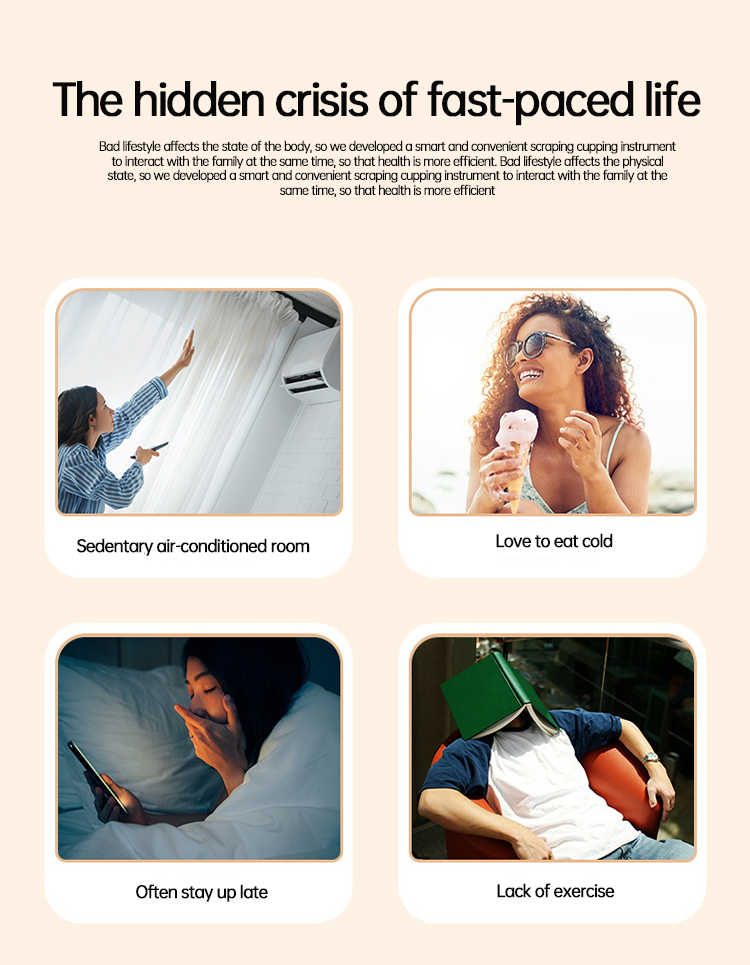 2.Strong suction, one-click pressure relief, easy cupping, painless scraping, effectively promote blood circulation, dredge meridians, relieve fatigue, and relax muscles.