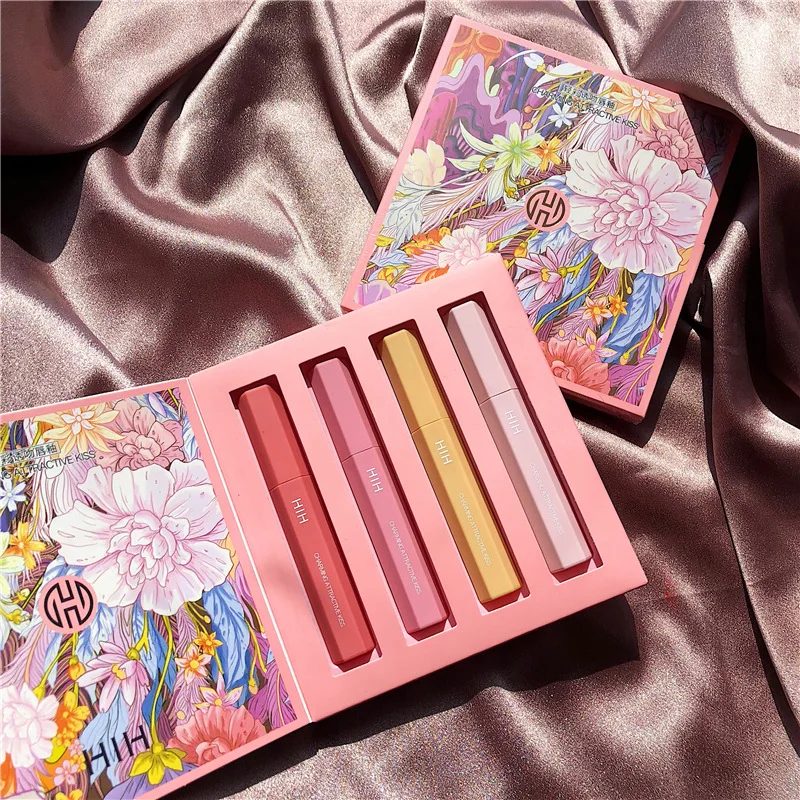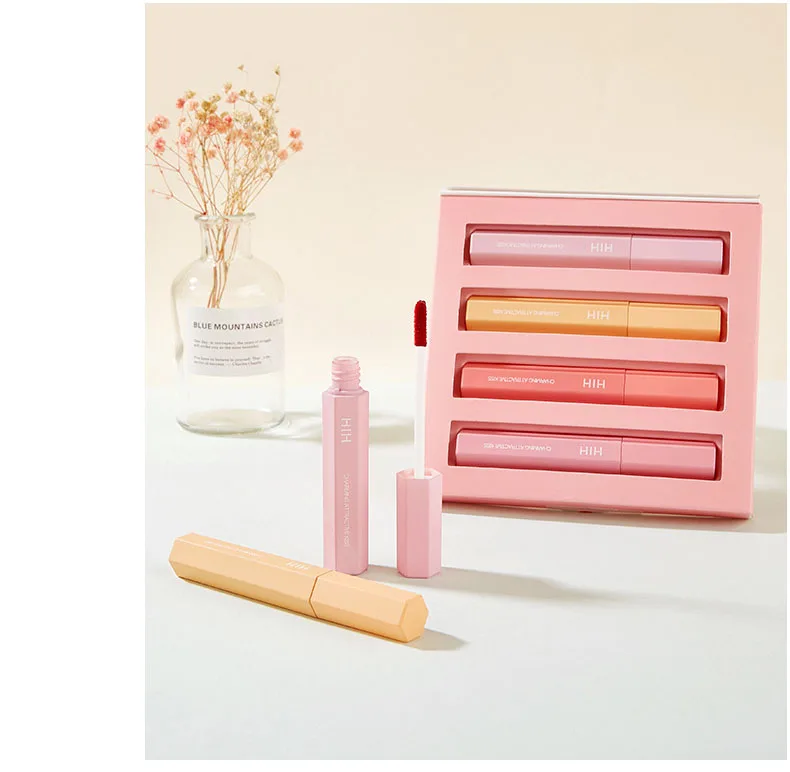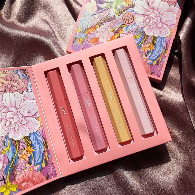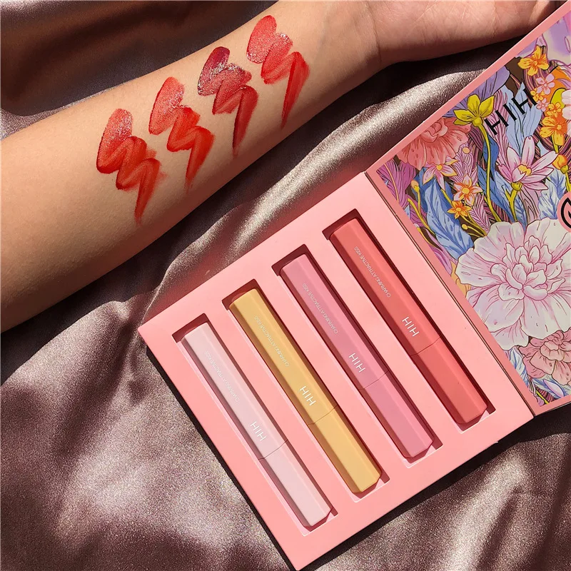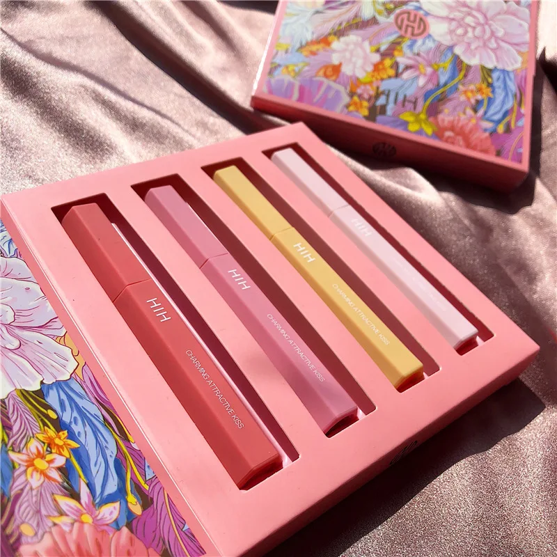 4 Pieces Of Lip Gloss Water Sensitive Mist Face Matte Lipstick Moisturizing Lasting And Easy To Color