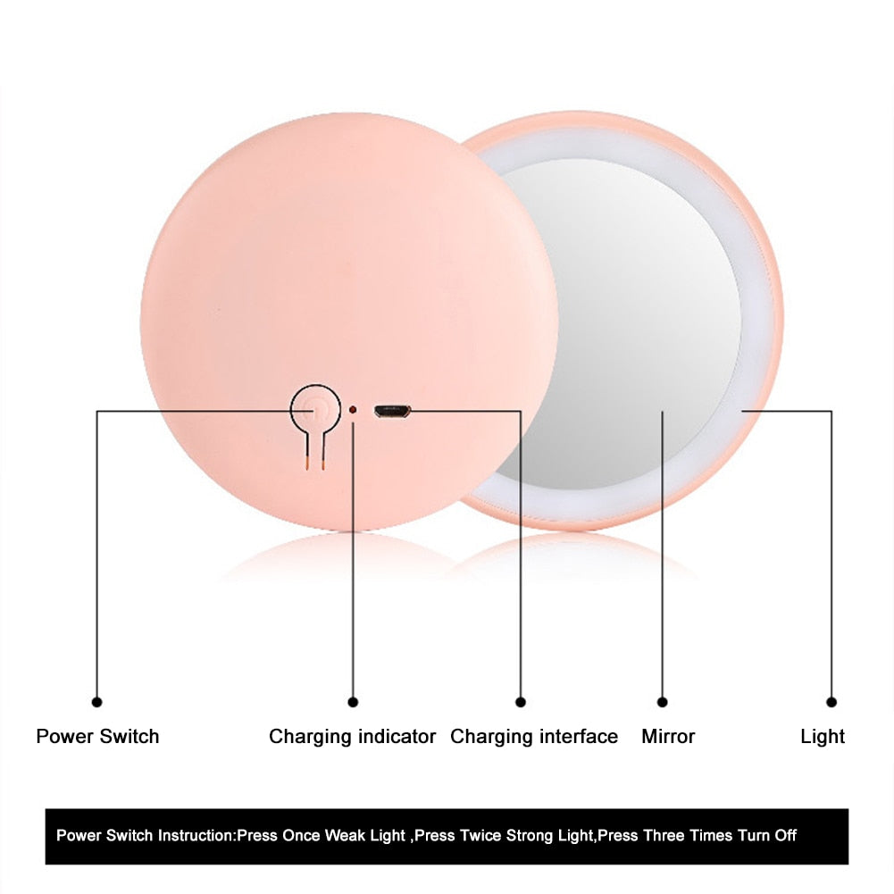 Classic Rechargeable Mini Portable Round HD Makeup Cosmetic Mirror with 12LED Lights