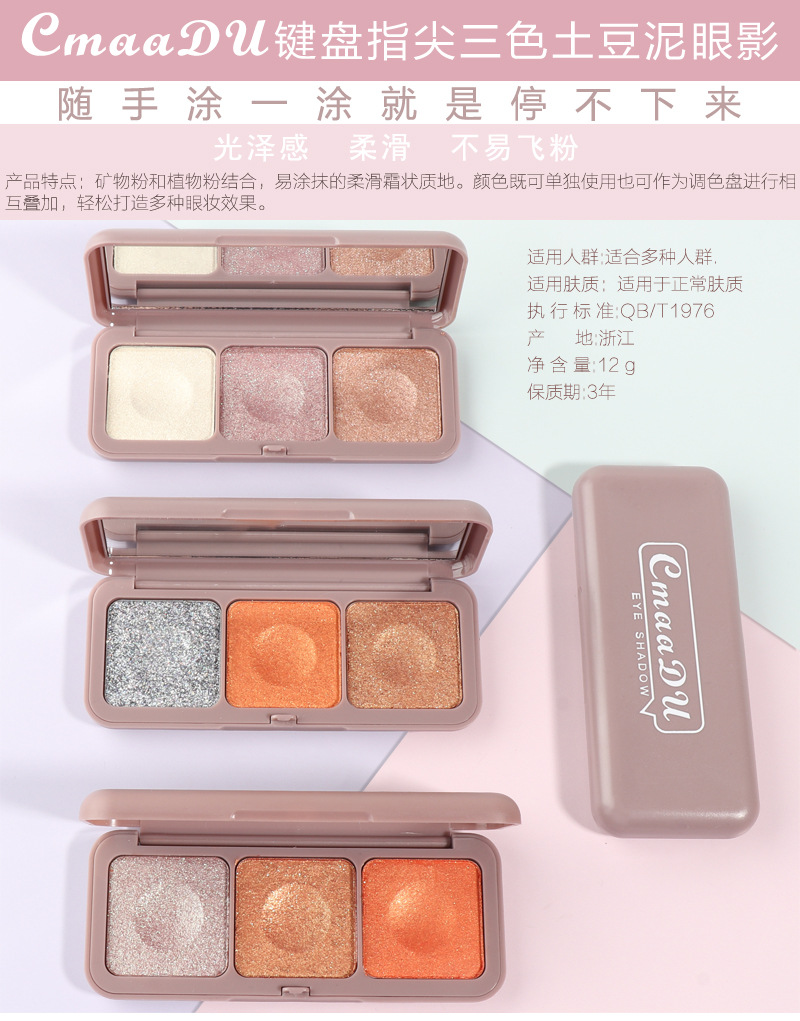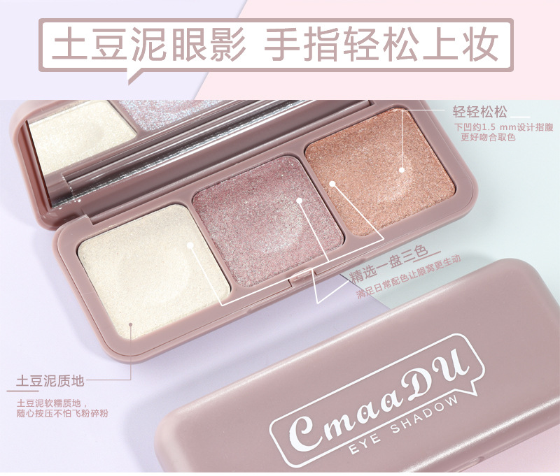 CmaaDu Three Color Mashed Potato Eye Shadow Fairy Plate Earth Color Moonlight Eye Shadow Color