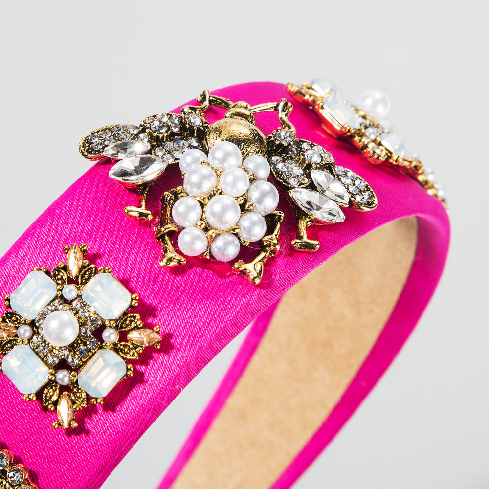 Creative Baroque Headband With Rhinestones Pearl Headband Bee Colorful Fabric Garland Headgear