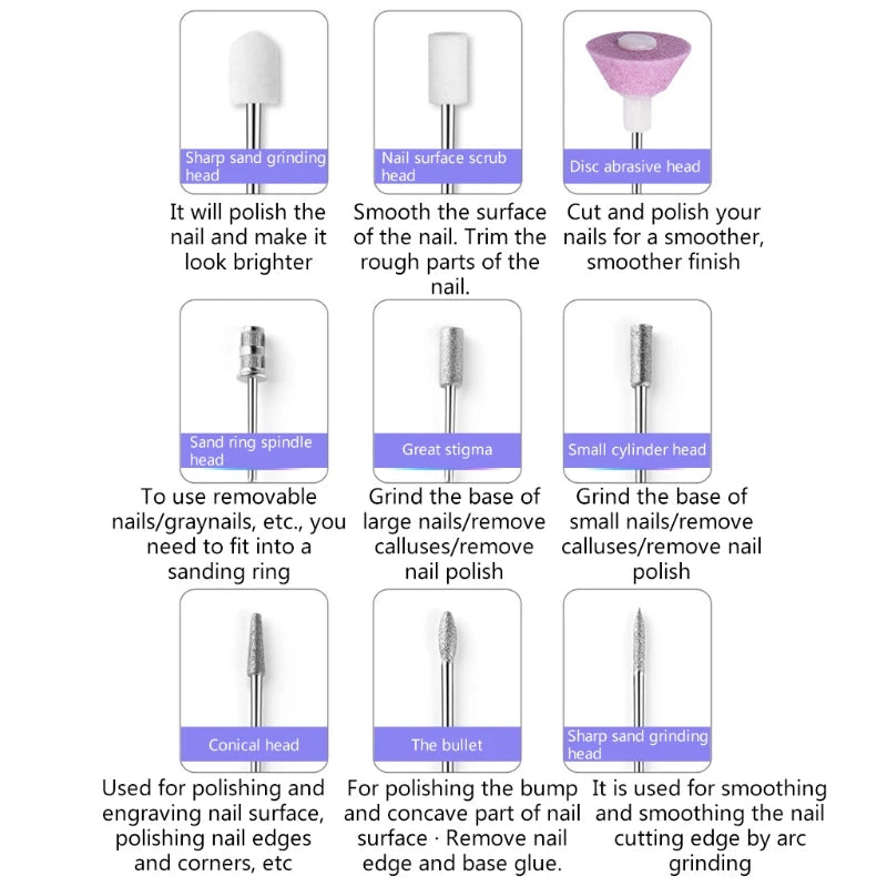 Multifunctional manicure machine set,different kinds of drill bits used for grinding,polishing, removing gel polish,ect. Â