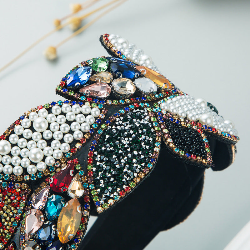 Headband Fashion Ball Rhinestone Pearl Leaf-Shaped Baroque Headband Exaggerated Wide-Brimmed Hair Accessories