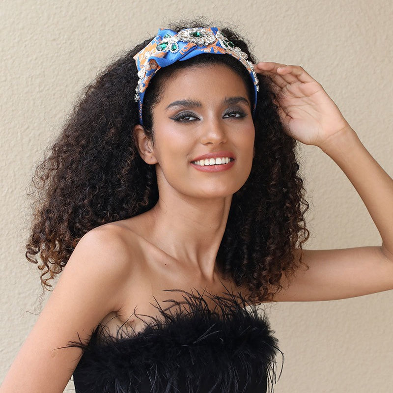 Heavy Industry Handmade Fabric and Diamond Set Fashion Hair Hoops for Women
