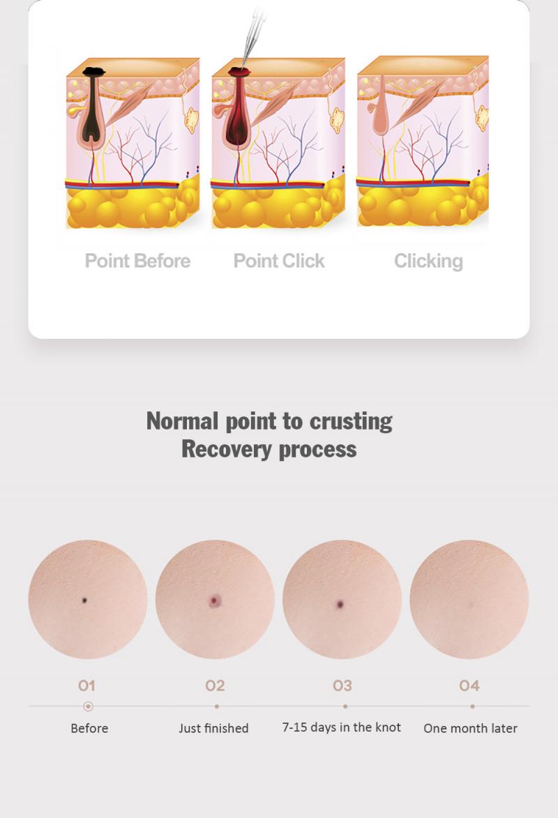 It has 9 kinds of intensity for different treatment.Lower level is used on spot and freckle.Strong level is used on mole and skin tags.