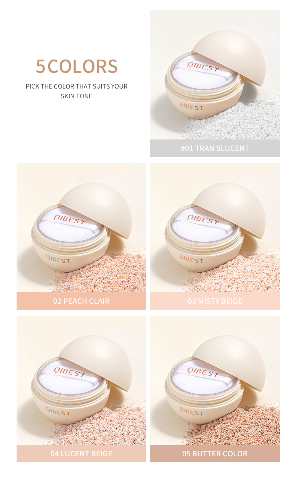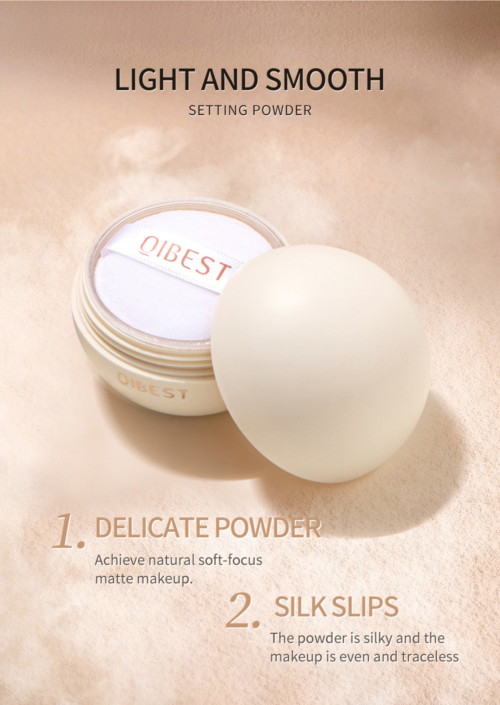 QIBEST Matte Setting Loose Powder Waterproof Natural Concealer Setting Powder Lightweight and Delicate Repairing Powder