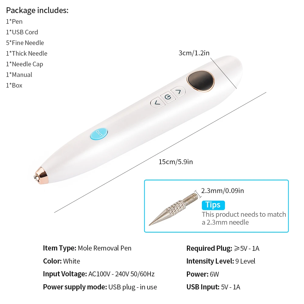 USB Rechargeable Mini Spot Removal Pen with LED Screen 9 Level Adjustable Hand-held Portable Beauty Pen