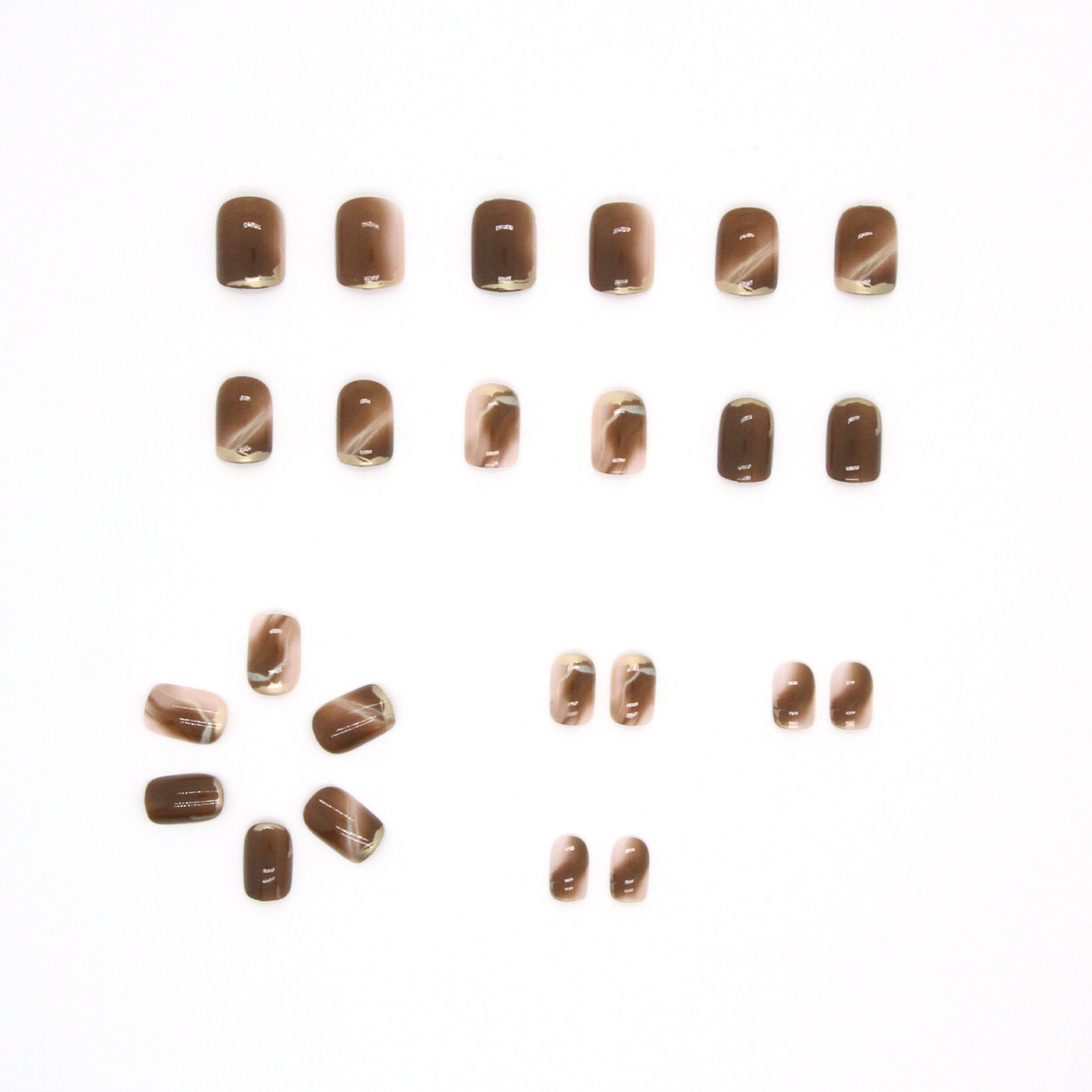 Wearing Warm Brown Brown White Double Spell Smudged Golden Texture Ins Style Manicure Patch The Finished Product Is Removable