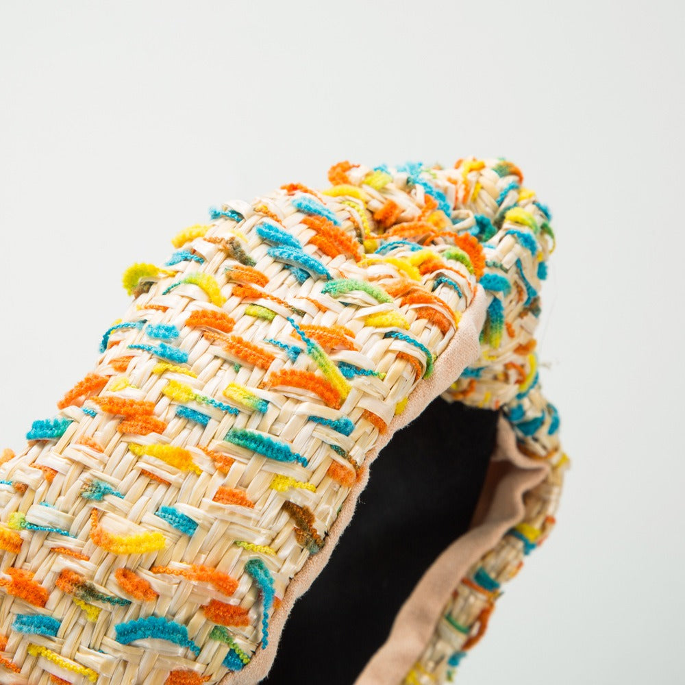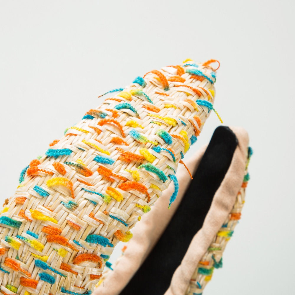 Weaving candy colored flower headband with simple knotting and wide edge headband